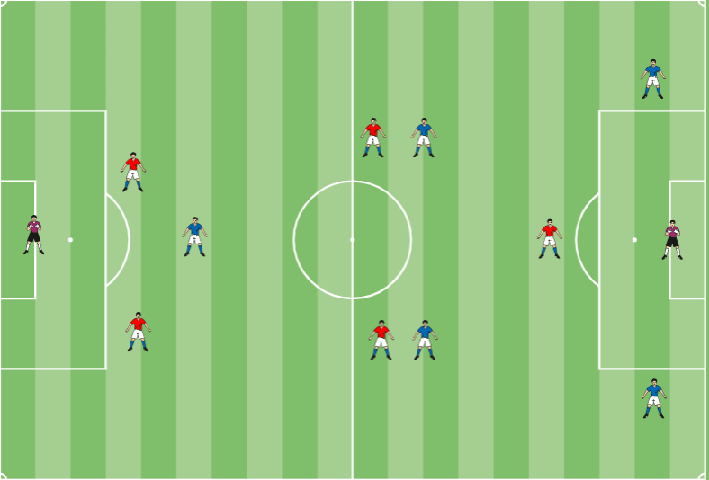 In the main part of the session the pitch was divided into three parts, as you can see below.