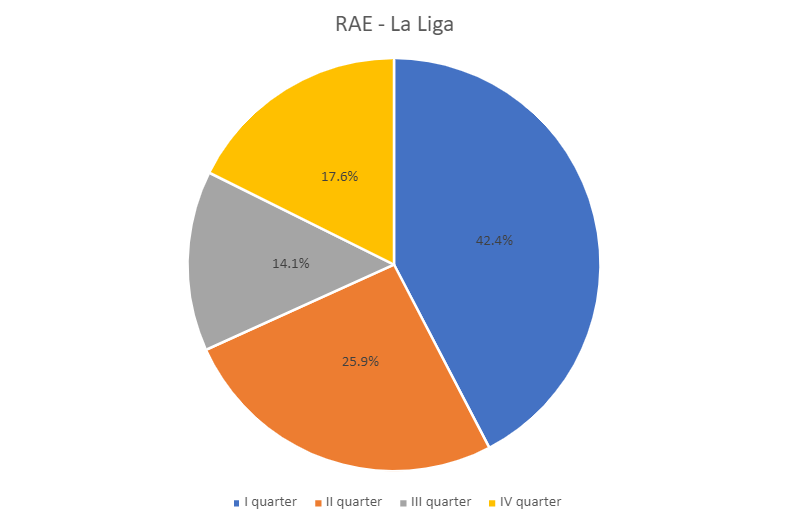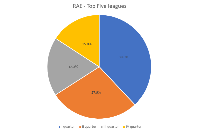 - Under-23 players born in the first quarter of a year dominate in every single competition analysed, with players born in the second quarter of a year always directly behind or, in only one instance, level.